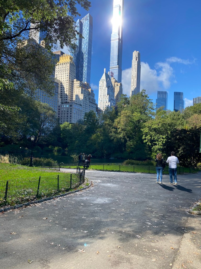 This mornings adventure (walk, subway, bagel, new experience) was fabulous and also sad at the same time. Fall is in the air. The seasons are turning and we will be leaving soon. And I also learned something. We took the C to the E and walked to 55th Street and 1st Ave (the lowest part of the Upper East Side). Quite and area of affluence. There we found Tal Bagels and I may have finally found my favorite bagel and cream cheese combination – toasted onion bagel with scallion cream cheese – Learning #1. It is a bit of a tourist faux pas to toast really good fresh bagels, but a habit I need to work on breaking. We then walked the mile plus over the 5th Ave and up to the SE corner of Central Park. Walking up 5th Ave in this area you pass MANY signs of affluence, or even extravagance. I’d come to almost resent NYC for this. Who knows, maybe the prior presidential administration contributed. It is interesting, we have spent so little time in these areas of NYC. Any ventures into these areas have been for specific things; lunch at Balthazar (three times so far and a certain fourth to come), bagels at a few different Upper West Side bagel shops, opera at the NY Metropolitan Opera House are a few. As I was walking up 5th Ave. I experienced something else. A kind of acceptance or simple acknowledgement of this is just part of an extremely complicated city – Learning #2.