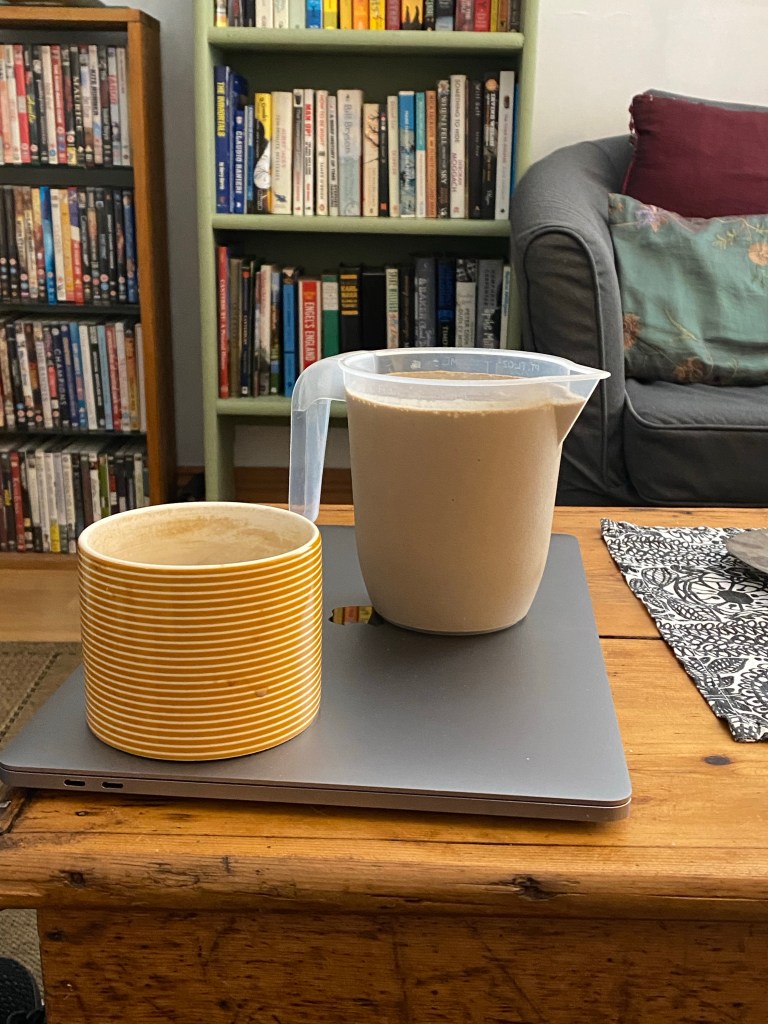 On Thursday, I went on Amazon to order and have delivered the “food” that has become my sustenance. I’m intaking about 75% to 80% of my calories through liquid diet. In the US I have it figured out. I use the re-order feature and coupled with some combination of fresh banana, fresh strawberry, raw spinach, chocolate powder, Nutella, almond butter, ice and my excellent VitaMix I blend a calorie bomb (750-1,000+) concoction. In the UK, Ensure is unavailable – pivot. In UK, my high calorie protein powder is unavailable – pivot. I pivoted. And when I pressed order, it said I would receive July 25th – oh shit!