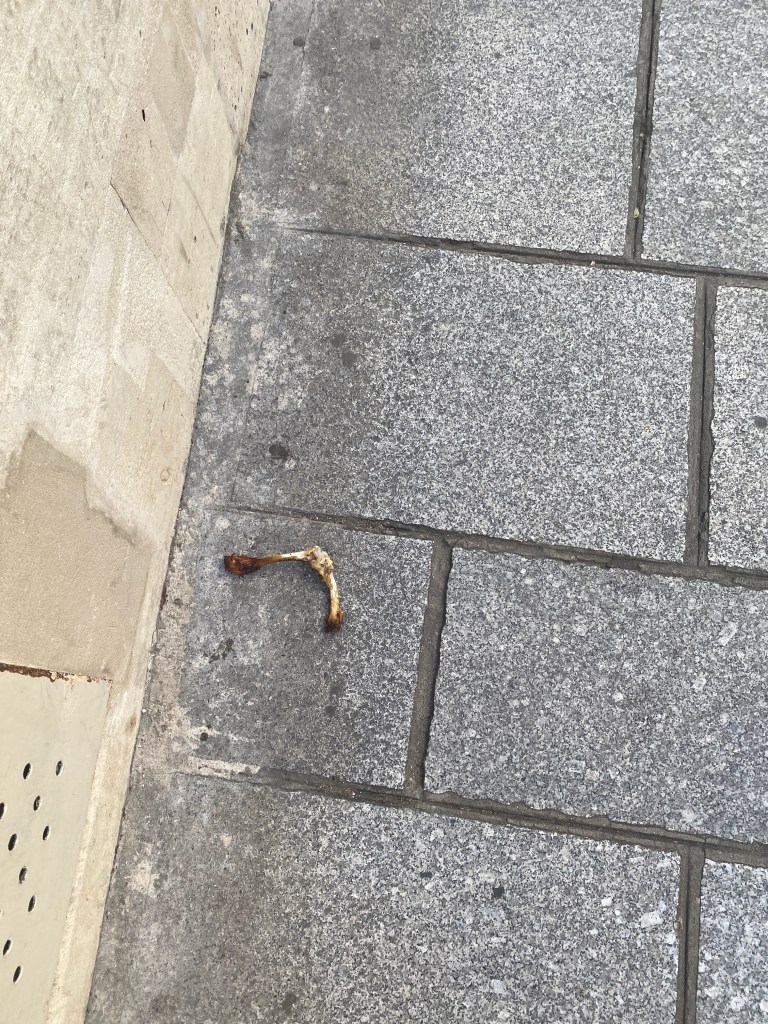 Do you remember how in Brooklyn I was constantly on the lookout for discarded chicken bones? They were a real issue for me because Dug could smell them a mile away and would pull me toward them. I saw this and was reminded of Brooklyn. And Dug.