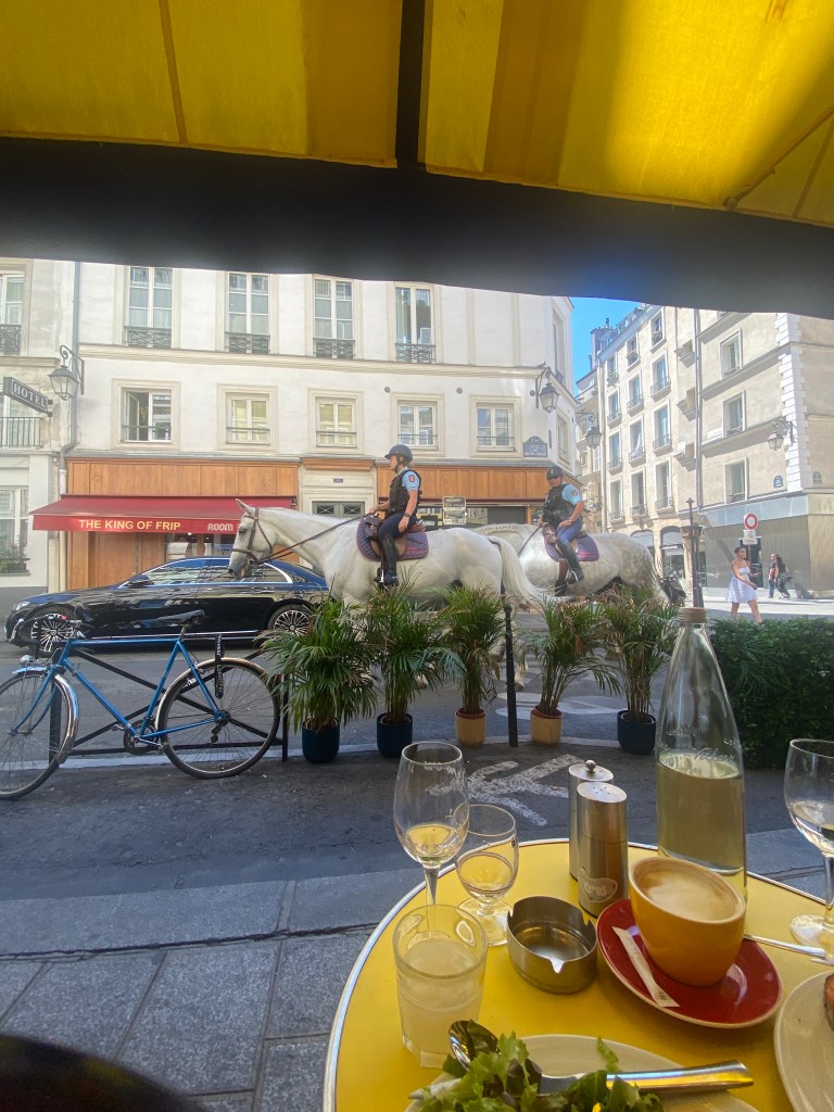 Here in Paris – lots of police. The first thing I noticed was the sound of the sirens. It’s just so European. Just think about a Jason Bourne or a James Bond movie. Yep. That’s the sound. Then we’ve seen police vans full of officers (I assume that’s who’s in there) dashing by and little mini police cars maneuvering in and out of traffic.