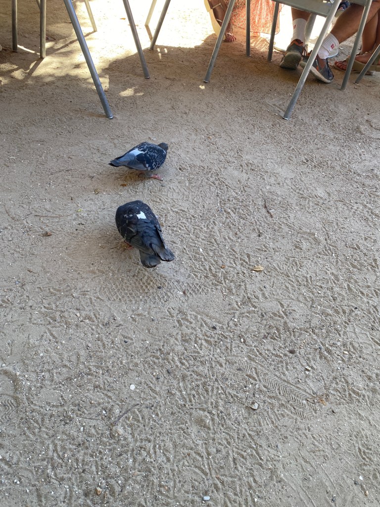 Paris has pigeons. Lots of pigeons. Glen calls them rats with wings. They haven’t been bothersome, but they sure aren’t afraid of humans. They don’t mind your feet kicking in their direction, they just hop away and return as soon as you turn away – especially if you have left some good morsels at your feet.