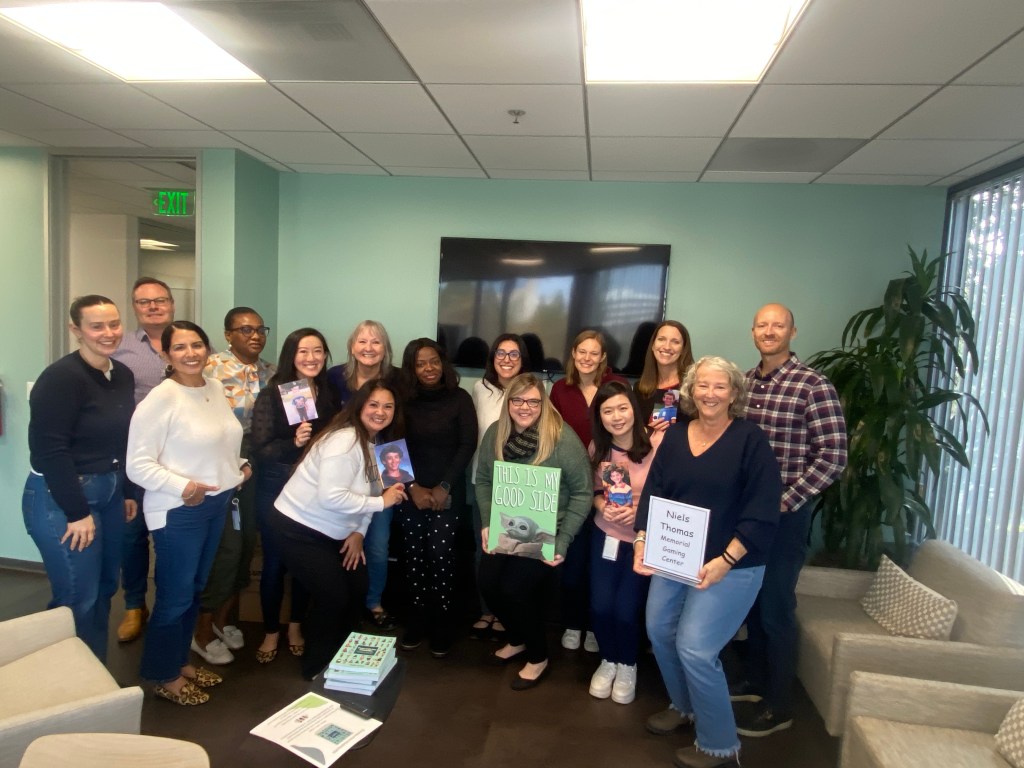 A couple weeks ago, Blair and I (Glen was ill with pneumonia) were invited to visit Niels’ Walnut Creek office. We had offered to donate all of Niels’ gaming equipment to them and our timing was great because they were remodeling so they created a memorial gaming center in their kitchen lounge in Niels’ honor. They asked us to come to see it and even provided lunch.